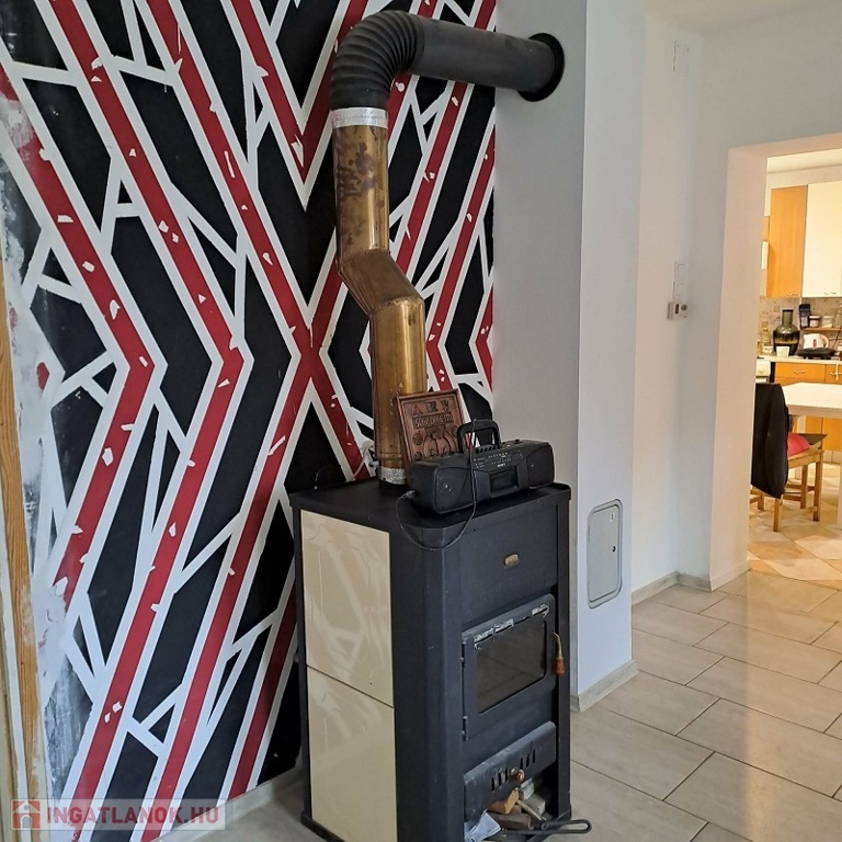 Fűtése egy rendszerről, kombi gáz cirkóval és vízteres kandallóval üzemeltethető, mely a 2. lakásban van.