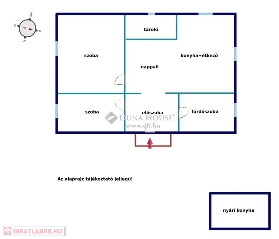 Eladó teljesen felújított családi ház Monoron, a Telepi részénSaroktelek, kiváló elhelyezkedés!Monoron, a Telepi városrészben kínálunk eladásra egy önálló, vegyes falazatú családi házat, amelyet 2023-ban teljeskörűen felújítottak.A ház 63,4 m² hasznos nettó területtel rendelkezik, és egy 894 m²-es saroktelken helyezkedik el, amely két utcáról is megközelíthető.Főbb jellemzők:Hasznos nettó terület: 63,4 m²Telek mérete: 894 m² (saroktelek, két utcáról megközelíthető)Szobák: 2 lakószoba, előszoba, nappali, konyha-étkező egy légtérben, fürdőszobaFelújítás: 2023-ban teljeskörű felújításon esett át (új nyílászárók, burkolatok, gépészet stb.)Udvari extrák: Nyári konyha az udvaronElhelyezkedés: Vasútállomás, iskola, bevásárlási lehetőségek a közelbenMiért válassza Monort?Kiváló közlekedés: Monor közlekedési szempontból kiemelkedően jól kapcsolódik Budapesthez és a környező településekhez. A vasútállomásnak köszönhetően a főváros gyorsan és könnyen elérhető, ideális napi ingázók számára.Fejlett infrastruktúra: Monor egy dinamikusan fejlődő város, amely az „okos város” koncepció jegyében folyamatosan modernizálja infrastruktúráját, így biztosítva a kényelmes és fenntartható életfeltételeket lakói számára.Gazdag szolgáltatások: A városban minden megtalálható, amire szüksége lehet – óvodák, iskolák, bevásárlóközpontok, orvosi rendelők és szabadidős lehetőségek széles választéka.Kulturális és közösségi élet: Monor gazdag kulturális programokat és közösségi eseményeket kínál, amelyek erősítik a helyi közösséget és kellemes lakóhelyet biztosítanak.Ez az ingatlan tökéletes választás azok számára, akik egy csendes, de jól megközelíthető helyen szeretnének élni, mindezt egy modern, felújított otthonban.Ne hagyja ki ezt a kivételes lehetőséget! Lépjen kapcsolatba velünk további információkért és a megtekintésért!
