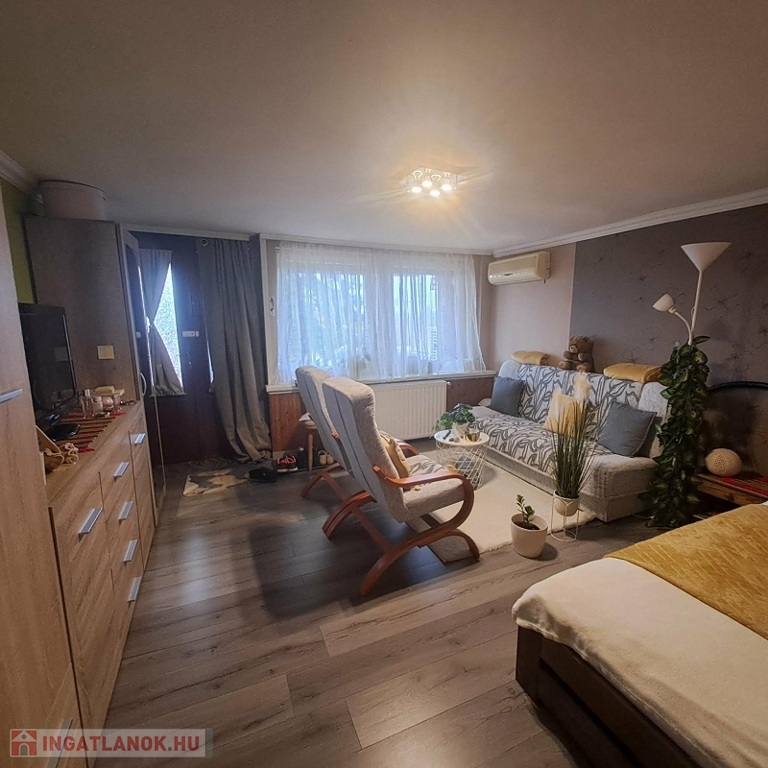 Ezen kívül egy különálló 53 m2-es kisház is van a telken, ami 1966-ban épült téglából, ebben előszoba, konyha, kamra, 1 + 1 félszoba található. Itt is műanyag, hőszigetelt nyílászárók vannak, kivéve a konyhában.