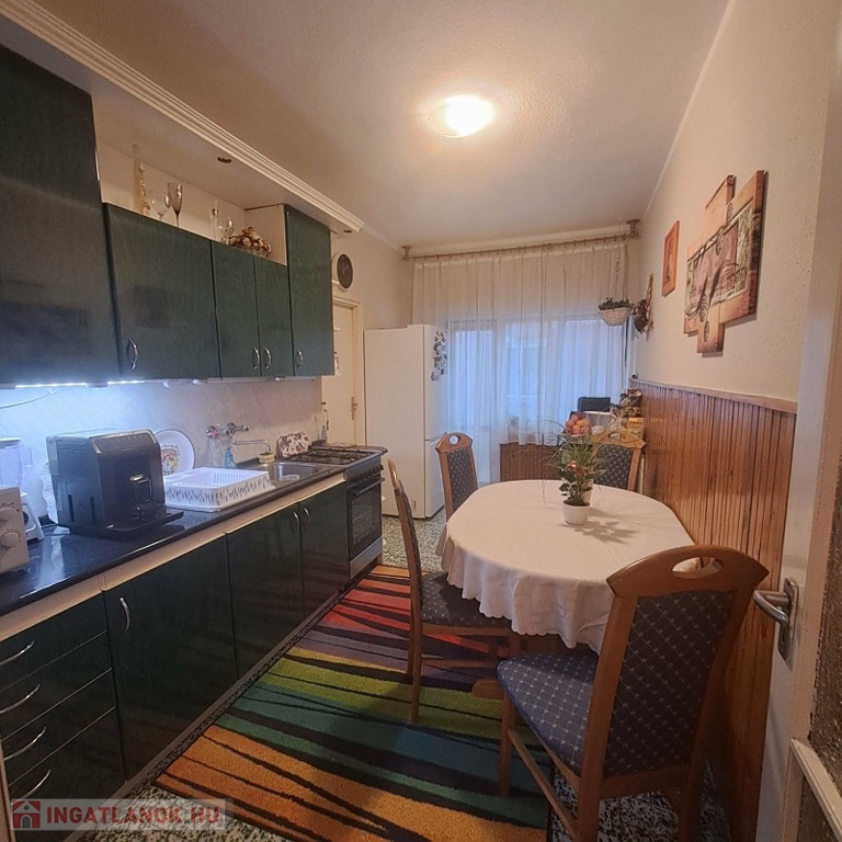 A ház tetőtere 33 m2, itt konyha, étkező, 1 szoba és fürdőszoba van kialakítva. 5 éve lettek a nyílászárók hőszigetelt műanyagra cserélve, a laminált parketta is ekkor lett újra cserélve.