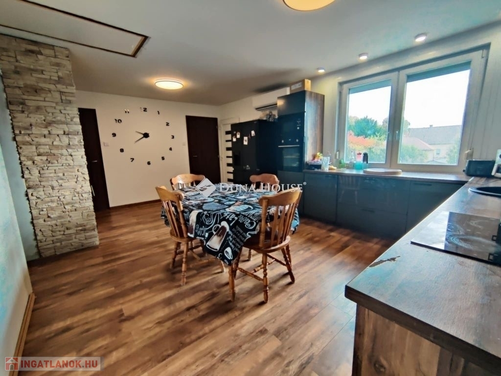 Monoron a városközpont közelében, átmenő forgalomtól mentes, aszfaltos utcában található az ingatlan, mely egy 2 generációs családi ház felső, 1. emeleti lakása.