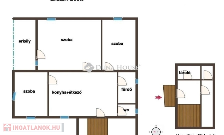- a földszintről egy külön bejáratú lépcsőházon keresztül lehet feljutni, ahol 2 földszinti tároló is található