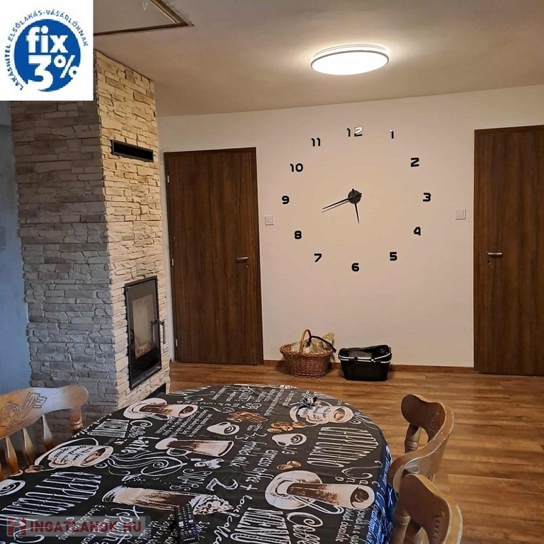 Az ingatlan fűtése 4 db inverteres klímával van megoldva, mely „H” tarifás kedvezményes áramról működtethető, ezen kívül egy kandalló is be lett építve az étkezőbe.