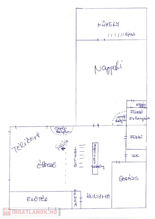 A telek első részén található egy kb. 40 m2-es bontandó vályogház, mögé épült 1984-ben a családi ház.