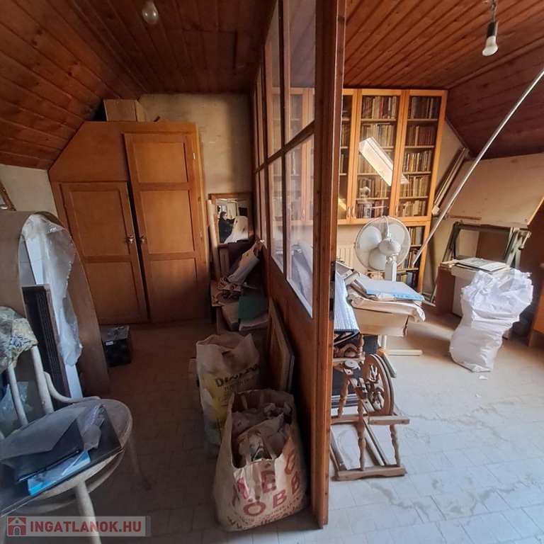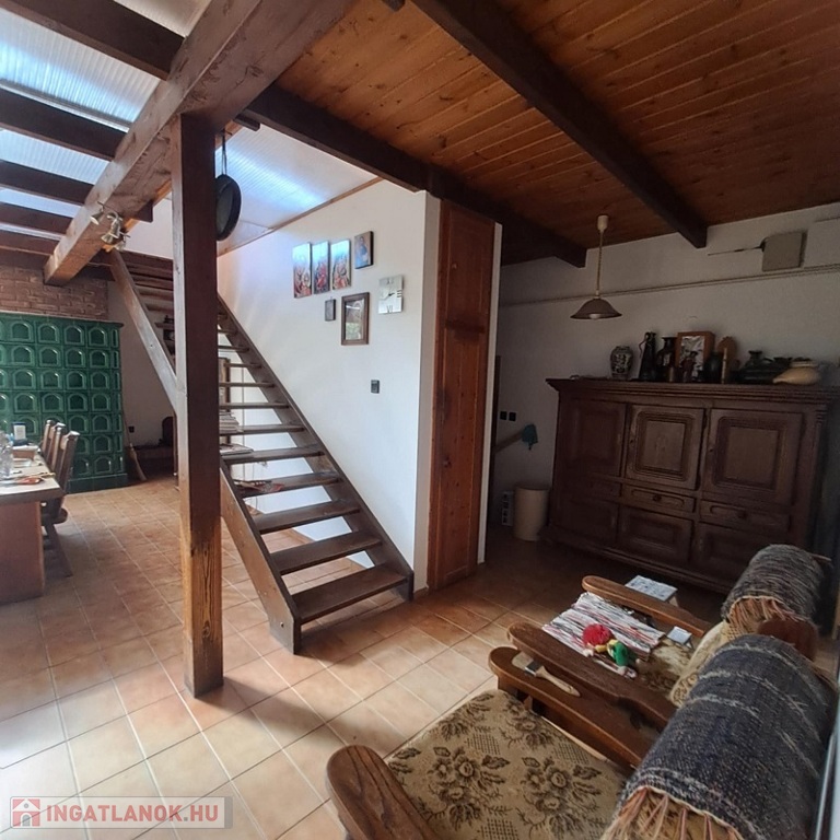 A ház lakóterülete kb. 160 m2, melyben földszinti részen található előszoba, étkező/télikert, konyha, kamra, 40 m2-es nappali, fürdő, WC. A nappali folytatásában ki van alakítva egy 32 m2-es műhelyként funkcionáló helység, melynek tetőterében egy iroda és zuhanyzó lett kialakítva. Igény szerint lakhatásra is át lehet alakítani.