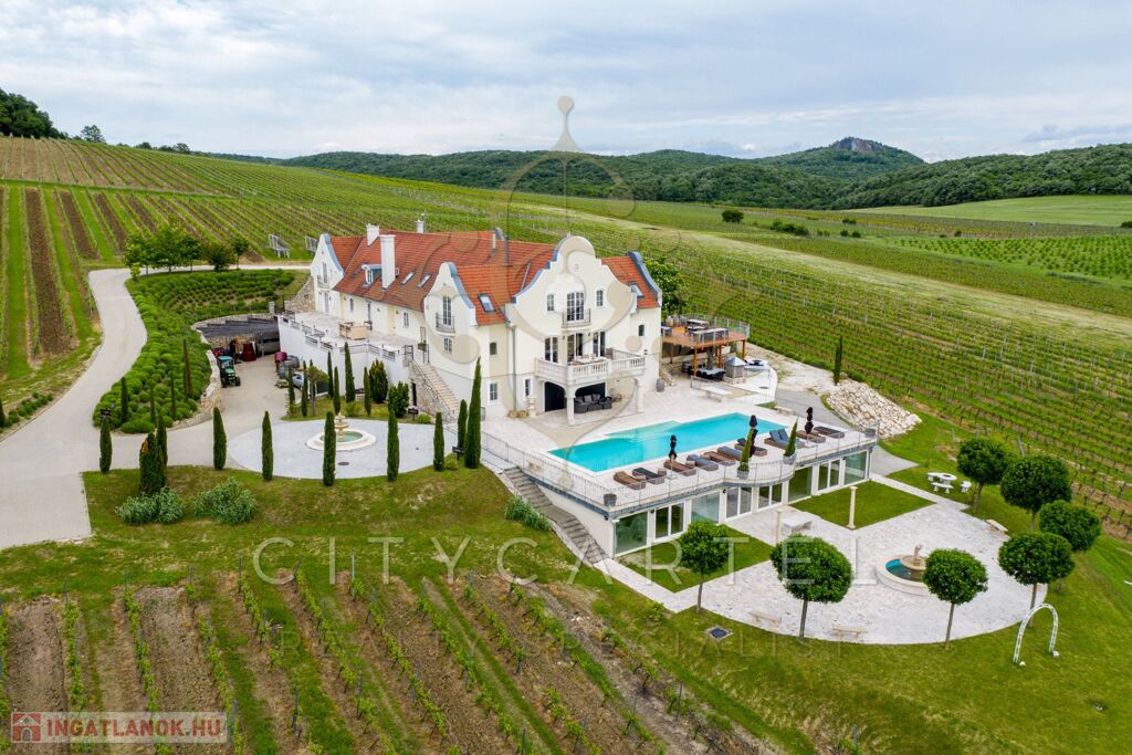 FESTŐI környezetben, a Balatonhoz közel kínálok eladásra egy francia Chateaux stílusban megépített, eklektikus, CSODÁLATOS panorámás, 2250 nm alapterületű, FELÚJÍTOTT, 3 szintes, 9 szobás BORBIRTOKOT a hozzá tartozó 10 hektárnyi szőlőtermő területtel!