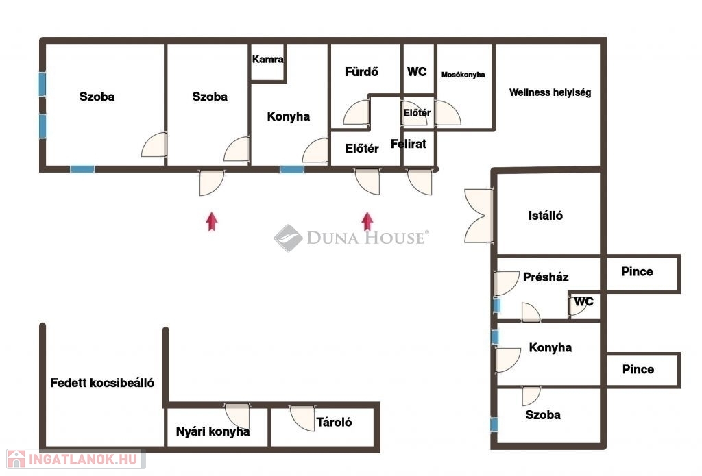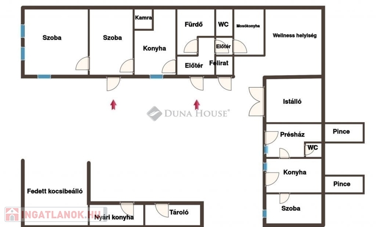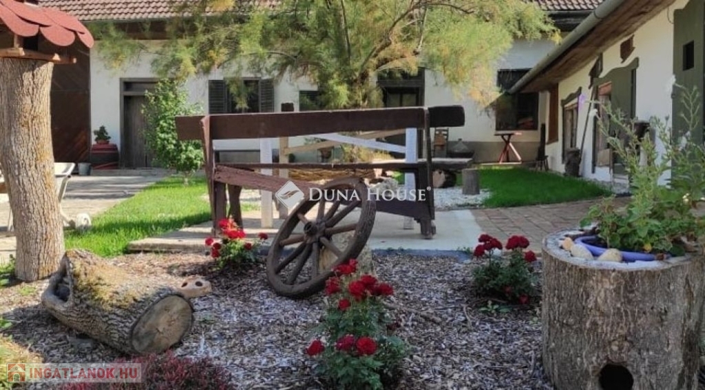 Felújított parasztház wellnessrészleggel Baranya megyében, kiadásra vagy állandó lakhatásra!Baranya megyében, az M60-as autópálya bólyi lehajtójától mindössze 4 km-re, a nyugodt fekvésű Monyoród településen kínálunk megvételre egy körülbelül 140 éves, 2020-ban teljes körűen felújított, klimatizált parasztházat. Az ingatlan jelenleg vendégházként üzemel, egy mindössze 180 fős, zsákutcás faluban.Az ingatlan jellemzőiA lakóépület nettó alapterülete kb. 90 m², melyben két szoba, konyhaétkező, kamra, egy kádas és zuhanyzós fürdőszoba, külön mellékhelyiség, valamint mosókonyha került kialakításra.Az ingatlan összközműves: víz-, gáz-, villany- és csatornahálózatra csatlakozik.A fűtést gázkazán, vízteres cserépkályha, valamint klímaberendezés biztosítja.Telek és melléképületekA telek területe megközelítőleg 1400 m², melynek első, mintegy 700 m²-es része parkosított.A korábbi istállóépületből egy kb. 50 m²-es, önálló lakóegység került kialakításra, mely szobát, konyhát, zuhanyzót, WC-t, valamint egy 25 m²-es közösségi teret foglal magába. Az épülethez két pince is kapcsolódik.A főépület és az istálló találkozásánál egy wellnessrészleg kapott helyet, jakuzzival, szaunával és merülő dézsával.További extrák8,2 kW-os napelemes rendszer, 3×32 A áramkapacitássalKét autó számára kialakított beállóNyári konyha és több szerszámtároló az udvarbanAz ingatlan teljes berendezéssel, a napelemes rendszerrel, valamint a wellness elemekkel együtt kerül értékesítésreA település folyamatosan fejlődik: megújult a kultúrház, az orvosi rendelő és a buszmegálló, valamint élelmiszerbolt is rendelkezésre áll.Pécs 25 km, Mohács 20 km, Harkány 35 km távolságra érhető el. Az ingatlan falusi turizmusra is ideális vállalkozási lehetőséget kínál, jelenleg is vendégházként üzemel, így a hasznosítása azonnal folytatható.