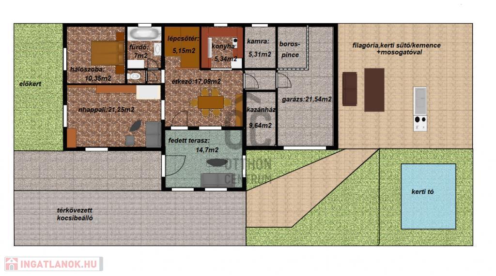 21,5 m²-es garázs borospincével (kb. 4 m²)