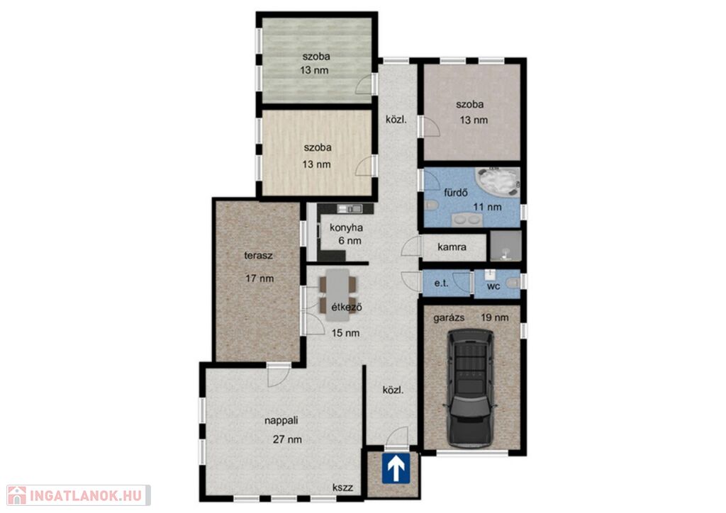 - Nappali, konyha,étkező,3 db hálószoba,fürdő,WC,kamra.közlekedő.