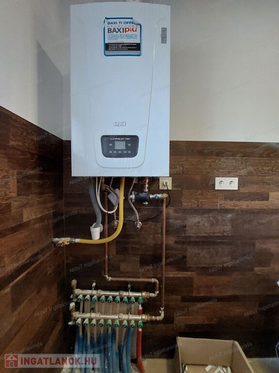 - modern anyagok, kis rezsi: az ingatlan homlokzata szigetelt (15 cm), 3 rétegű hőszigetelt műanyag nyílászárókkal ellátott, valamint Baxi kondenzációs kazánjának (végig padlófűtés) köszönhetően a rezsi alacsonyan tartható,