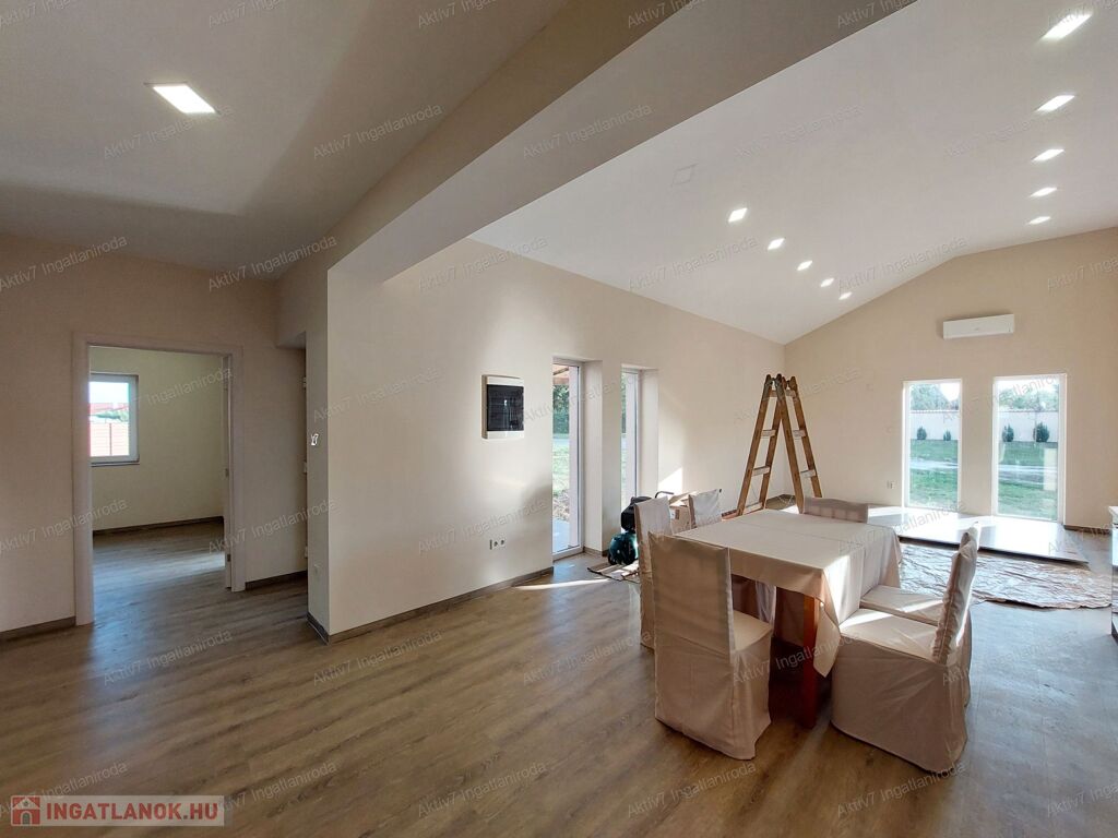 Mórahalmon, szép környezetben, Mátyás király körúton földszintes, 85 nm lakóterületű, amerikai konyhás nappali+2 szobás, nagy teraszos (+ 16 nm), egyedi fűtésű (kondenzációs kazán padlófűtéssel), klímás, hőszigetelt, téglaépítésű családi ház (2023-as építés, kulcsrakész) 950 nm-es telken eladó! Érdemes megnézni! Legyen Ön az ELSŐ lakója!