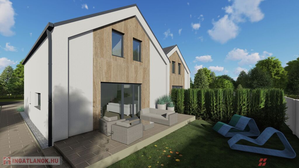 Mosonmagyaróváron a Duna Lakóparkban, ÚJ ÉPÍTÉSŰ, 364 m2-es telekrésszel rendelkező, 113 m2 hasznos alapterületű, 3 szoba + nappalis, kiváló alaprajzi elrendezésű, magas műszaki tartalommal épült, energiatakarékos hőszivattyús fűtési rendszerrel szerelt ikerház, részben fedett 20 m2-es terasszal, 36 m2 - es térkövezett gépkocsi beállóval emeltszintű szerkezetkész állapotban eladó.