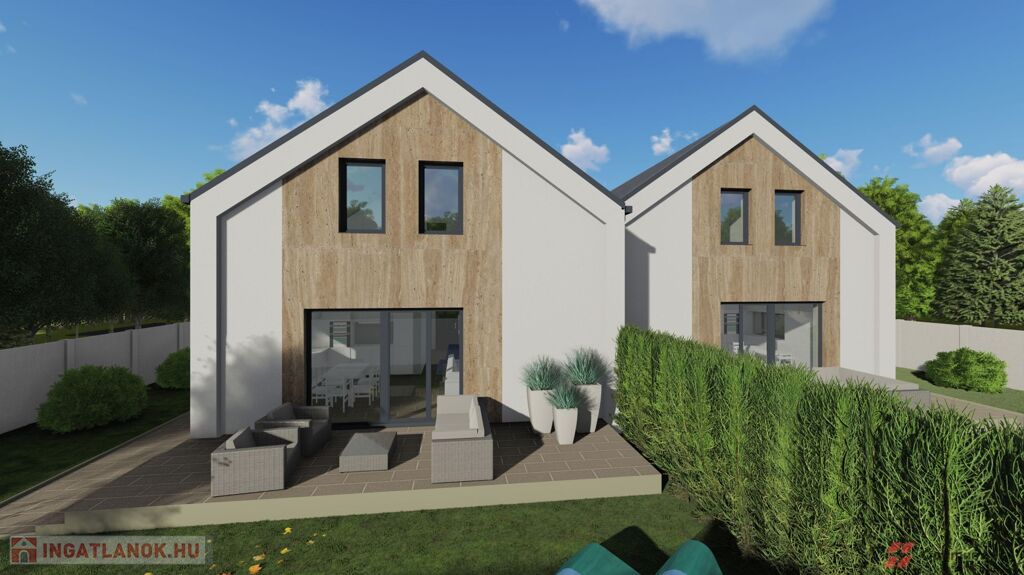 Mosonmagyaróváron a Duna Lakóparkban, ÚJ ÉPÍTÉSŰ, 364 m2-es telekrésszel rendelkező, 123 m2 hasznos alapterületű, 4 szoba + nappalis, kiváló alaprajzi elrendezésű, magas műszaki tartalommal épült, energiatakarékos hőszivattyús fűtési rendszerrel szerelt ikerház, részben fedett 20 m2-es terasszal,36 m2 - es térkövezett gépkocsi beállóval emeltszintű szerkezetkész állapotban eladó.