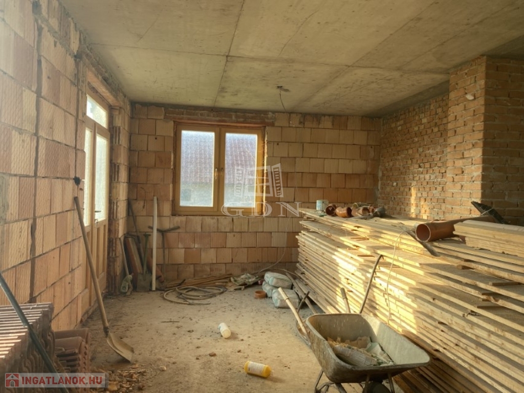 A ház építése 2008-ban kezdődött kőbeton sávalapozással, c.16 minőségű beton lábazati falakkal, 2 rétegű talajnedvesség elleni szigetelő lemezzel, Porotherm 38 cm vastag külső határoló falakkal és Porotherm 30 cm vastag H10 habarccsal szigetelt belső főfalakkal, vasbeton födémmel, nyeregtetővel, kerámia cserépfedéssel, 2 leier turbo kéménytesttel, melybe akár gázkazán, vegyestüzelésű kazán, kandalló köthető. Fa nyílászárók kerültek beépítésre. Közművek közül a csatorna és a villany került bekötésre az ingatlanba.