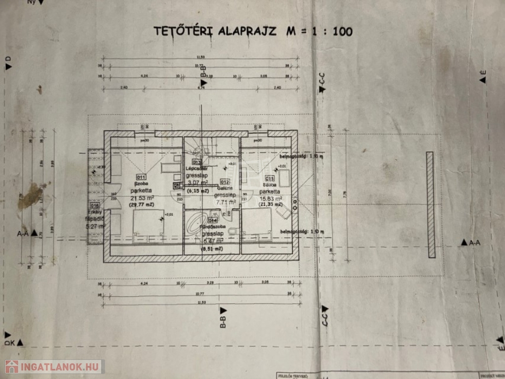 A tetőtéri szinten egy fürdőszoba, 2 hálószoba, galéria, lépcsőtér található.