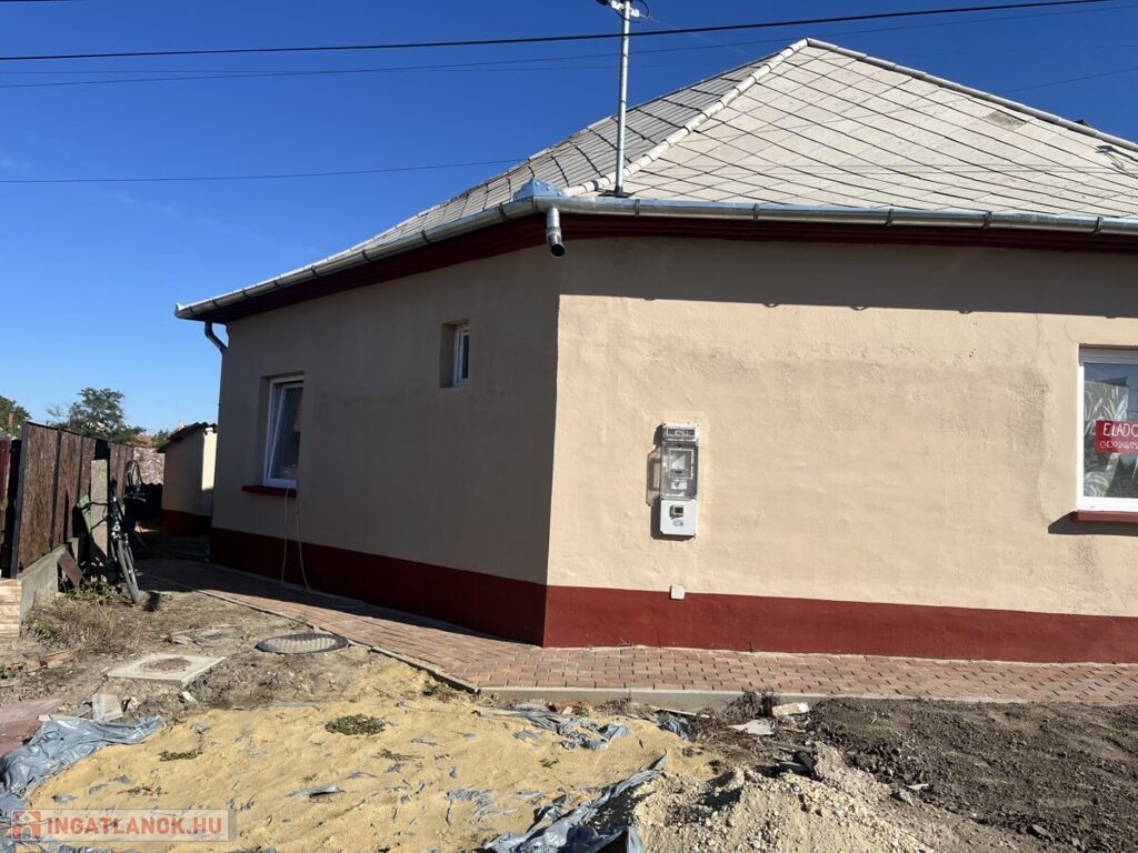 Nádudvaron eladó egy palatetős 70m2-es 2 szoba, nagy nappalis részben felújított családi ház ,műanyag nyílászáróval felszerelve., minden közmű bekötéssel 200 m2-es telken.
