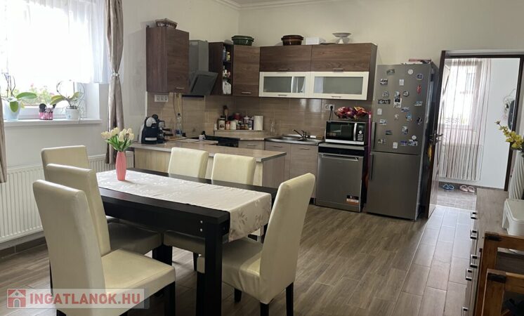 Nádudvaron eladó egy vegyes falazatúbeton alapon lévő cserepeslemeztetős. 70m2-es felújított családi ház. Az ingatlan előszobával, 2 szobával, nagy étkezőkonyhás nappalival, kádas fürdőszobával rendelkezik, Műanyag nyílászáróval, fa felső ajtókkal felszerelt, kombi kazánnal fűtött, laminált padlóval és járólapokkal búrkolt. Garázs és melléképület is található az ingatlan 1079m2-es telkén.