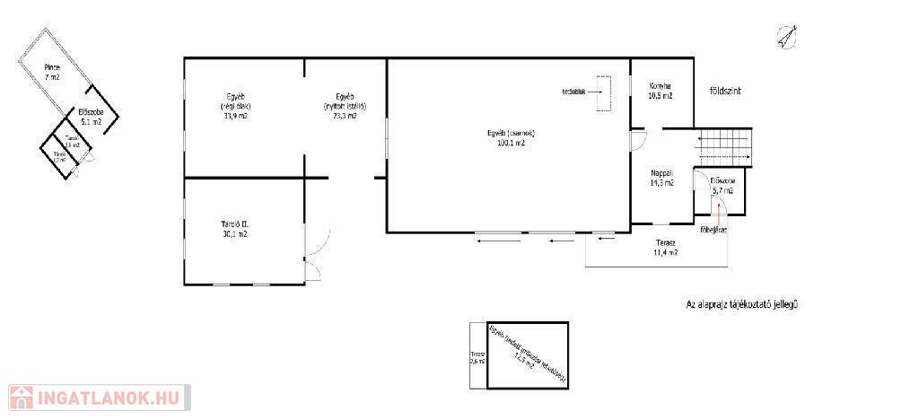 A gazdasági épületek kiemelkedőek: rendelkezésre áll 100 m2 több funkciót ellátó melléképület (állatartás, pince..stb.), valamint egy 100 m2-es, több mint 3,5 m belmagasságú csarnok, amely traktorok, mezőgazdasági gépek, eszközök tárolására kiválóan alkalmas.