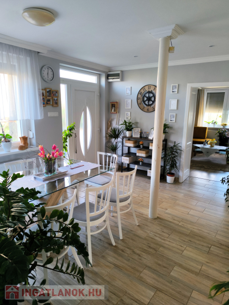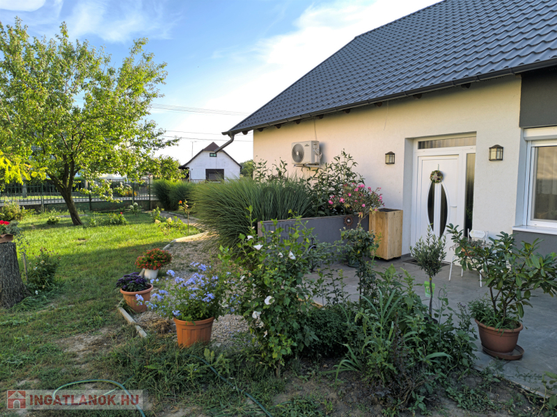 Az épület 122 négyzetméter, amely egy 1621 négyzetméteres telken található. A házban nappali és 2 hálószoba, 1 fürdőszoba található, illetve a konyha előterében egy tágas étkező, mely akár nappaliként is szolgálhat, és amelynek köszönhetően a család minden tagja kényelmesen elférhet. Az ingatlanhoz tartozik egy 20 négyzetméteres terasz, amely a kertre és a sziklakertre néz. Az ingatlan fűtéséről egy vegyes kazán és egy vadonat új gázkazán gondoskodik radiátorokon kersztül, míg a hűtése klímával megoldott, mellyel akár télen is rá lehet segíteni a fűtésre.