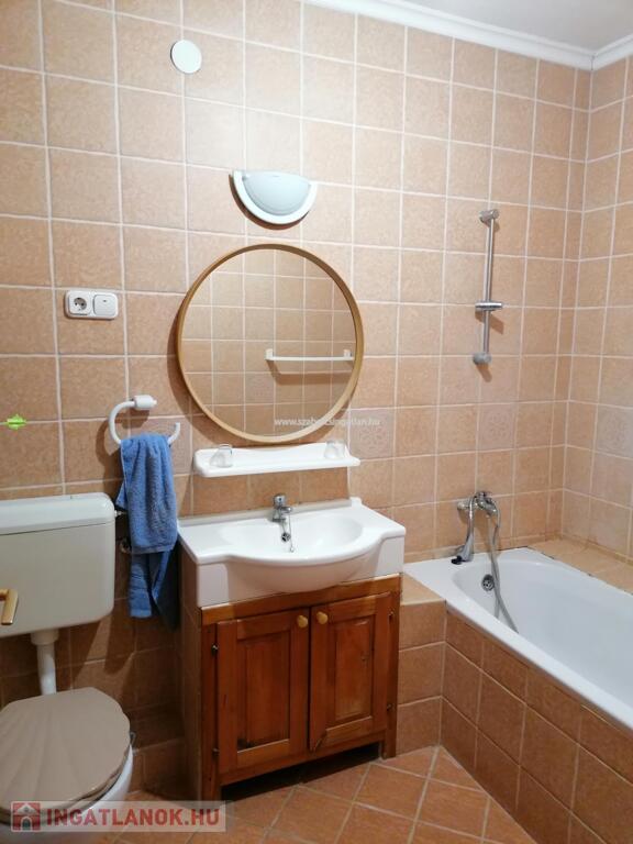 A fürdőszobában kád és zuhanyzó is van, hatalmas nagy, itt akár wellness rész is kialakítható.