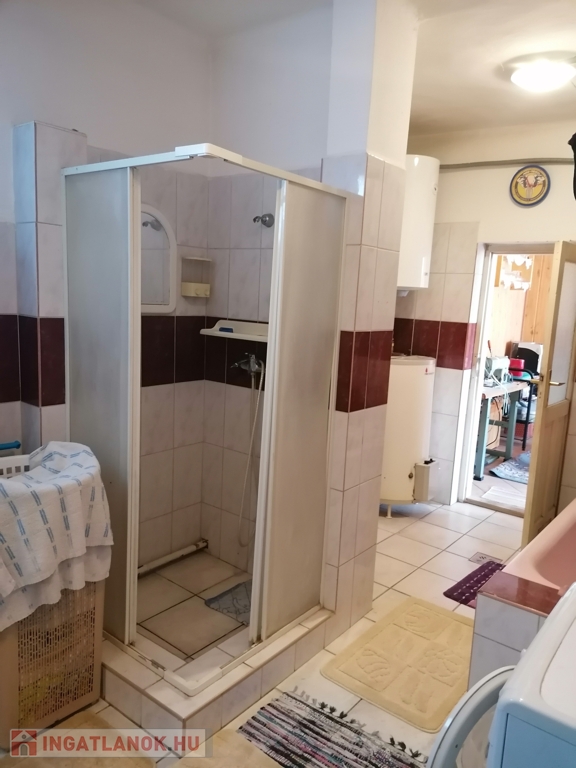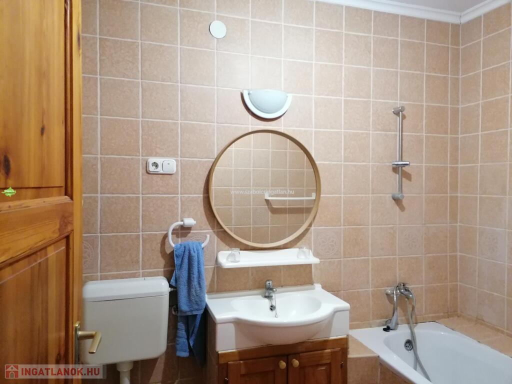 A fürdőszobában kád és zuhanyzó is van, hatalmas nagy, itt akár wellness rész is kialakítható.