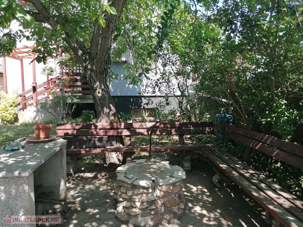 A kertben szivattyú van, ami nyáron a medencéhez biztosítja a vizet, fúrt kút is van.