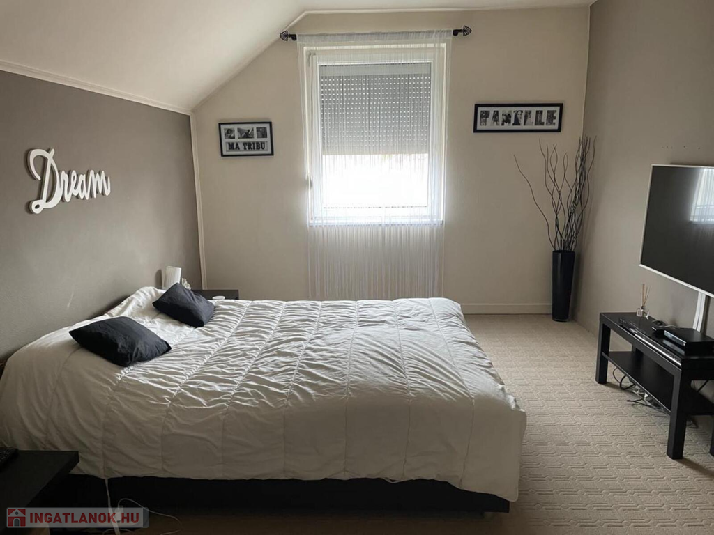 emeleten két hálószoba, hozzá kapcsolódó 1-1 erkéllyel, a félemeleten egy szoba, gardróbszoba