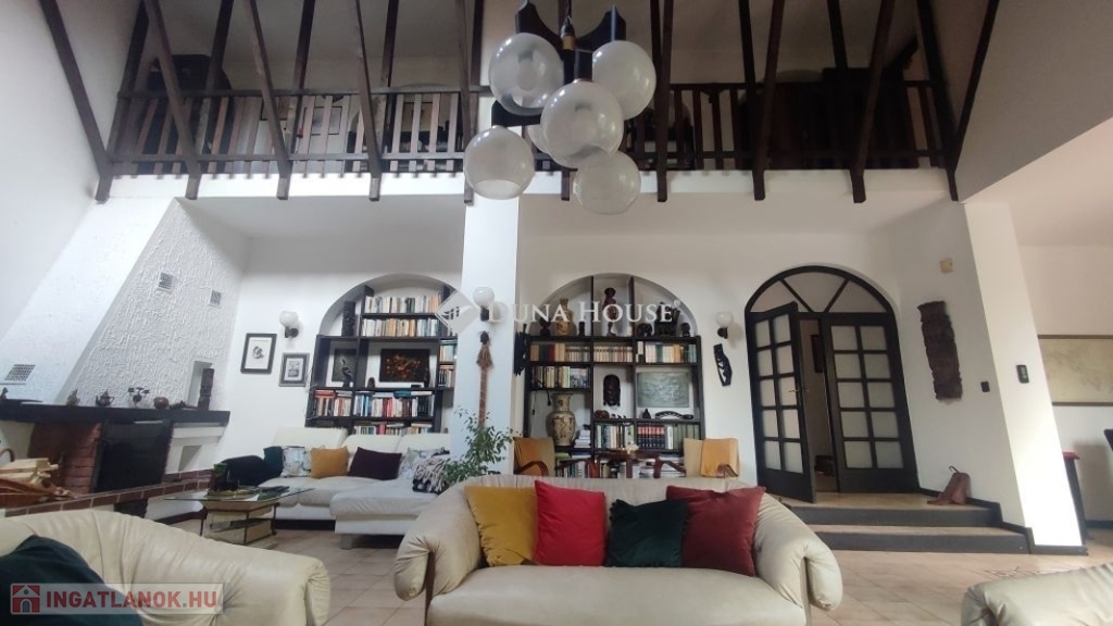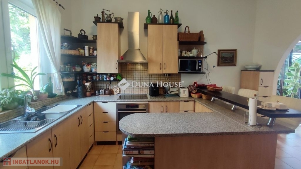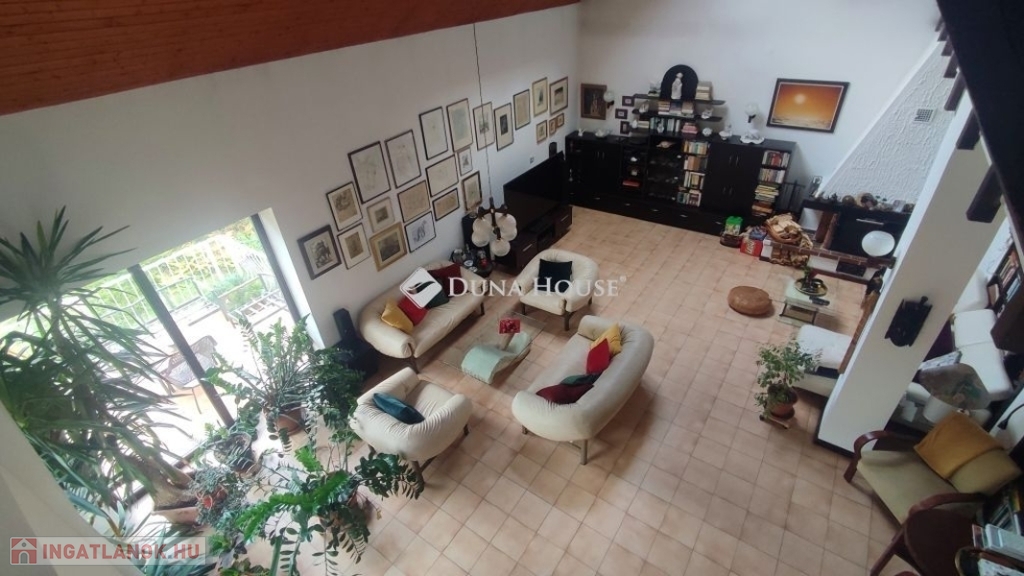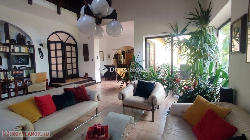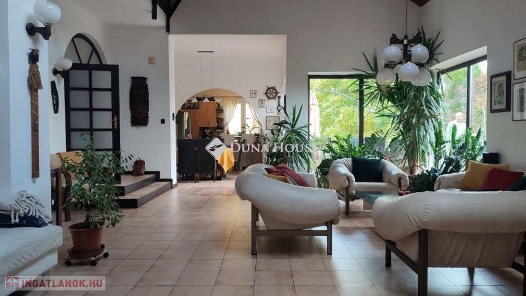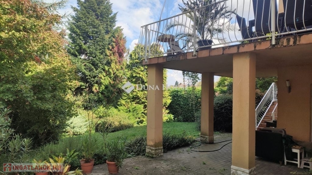 A ház egy 1324 m²-es, gondozott, ősfás telken fekszik, ahol a buja növényzet és egy impozáns mamutfenyő biztosítja a páratlan hangulatot.