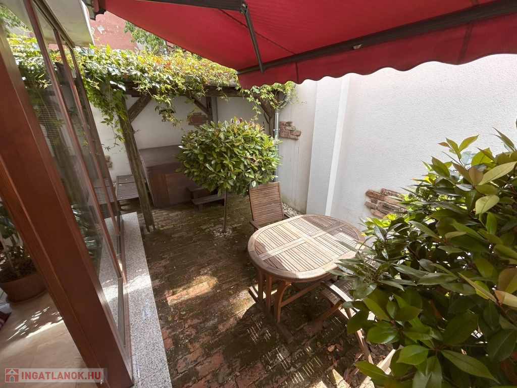 Az elektromos kapuval ellátott kétállásos garázs mellett a ház további különlegessége a mediterrán hangulatú veranda és a kertben elhelyezett kültéri jakuzzi, ami a tökéletes pihenés élményét kínálja saját otthonában.