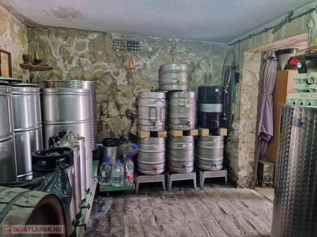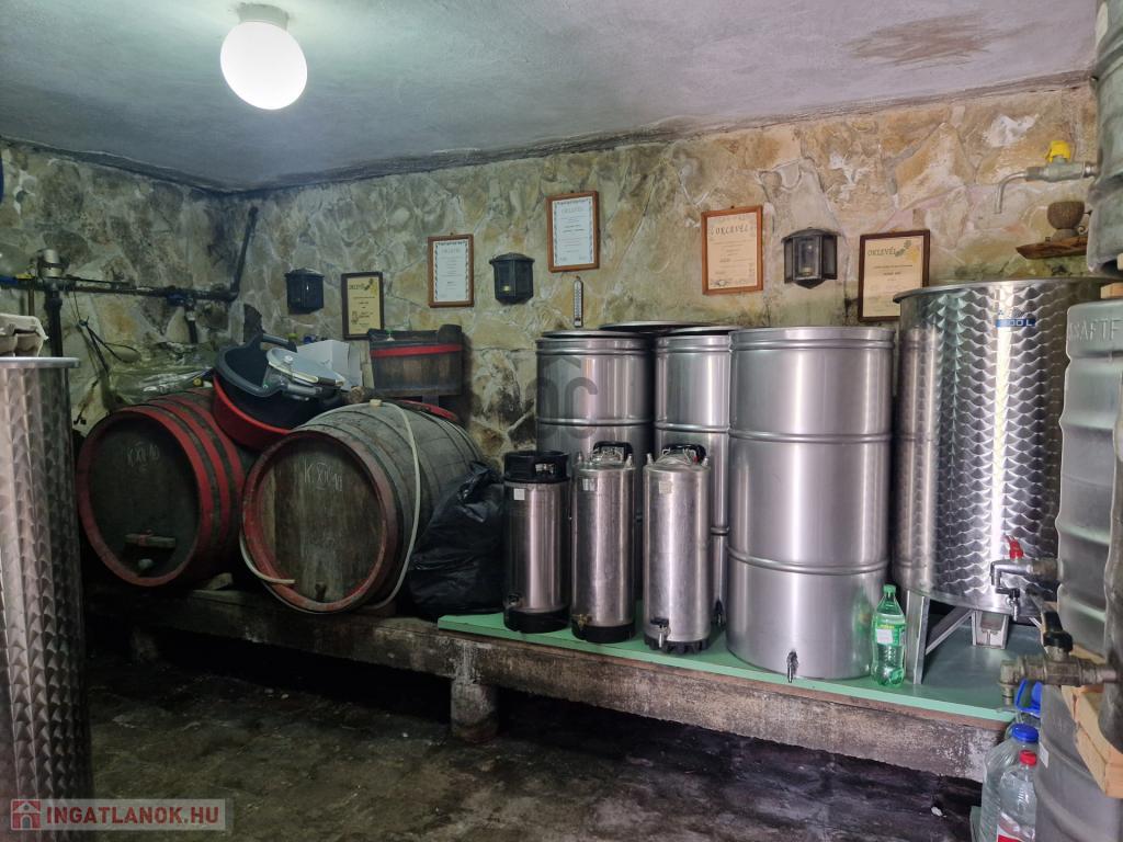 - A szuterén részen van egy 17,5m2-es szoba, mely jelenleg borozó részként funkcionál, valamint a mosógép is idelent kapott helyet. A másik helyiség a borospince, ahol a saválló hordók találhatóak.