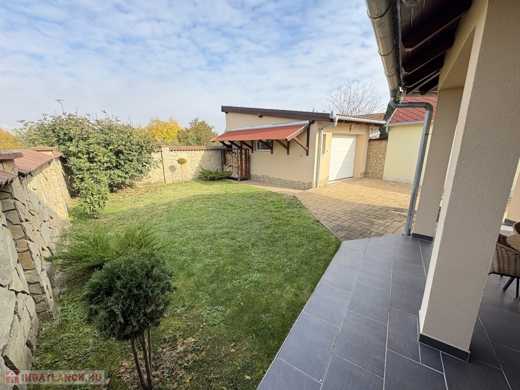 A fűtésről korszerű gáz-cirkó rendszer gondoskodik Schiedel kéménnyel, emellett a nappaliban egy hangulatos látványkandalló is helyet kapott. A prémium minőségű, hő- és hangszigetelt nyílászárók alumínium redőnnyel és szúnyoghálóval felszereltek. A tölgyfa beltéri ajtók és a kőrisfából készült konyhabútor tovább erősítik az otthon elegáns, természetes karakterét.A házhoz tartozó fedett terasz ideális helyszín a családi pihenésekhez és baráti összejövetelekhez. A 325 nm-es, magas kerítéssel körbevett udvaron Hörmann elektromos kapuval ellátott garázs található, mely mellett fedett fatároló is rendelkezésre áll. A tetőtér beépíthető, míg a ház alatti, betonozott pince további hasznos teret kínál.