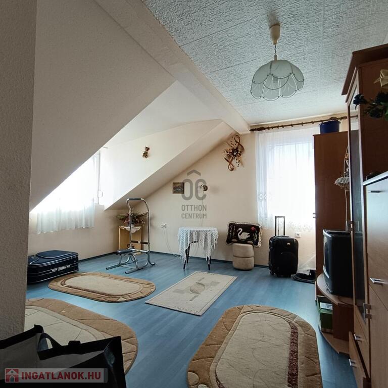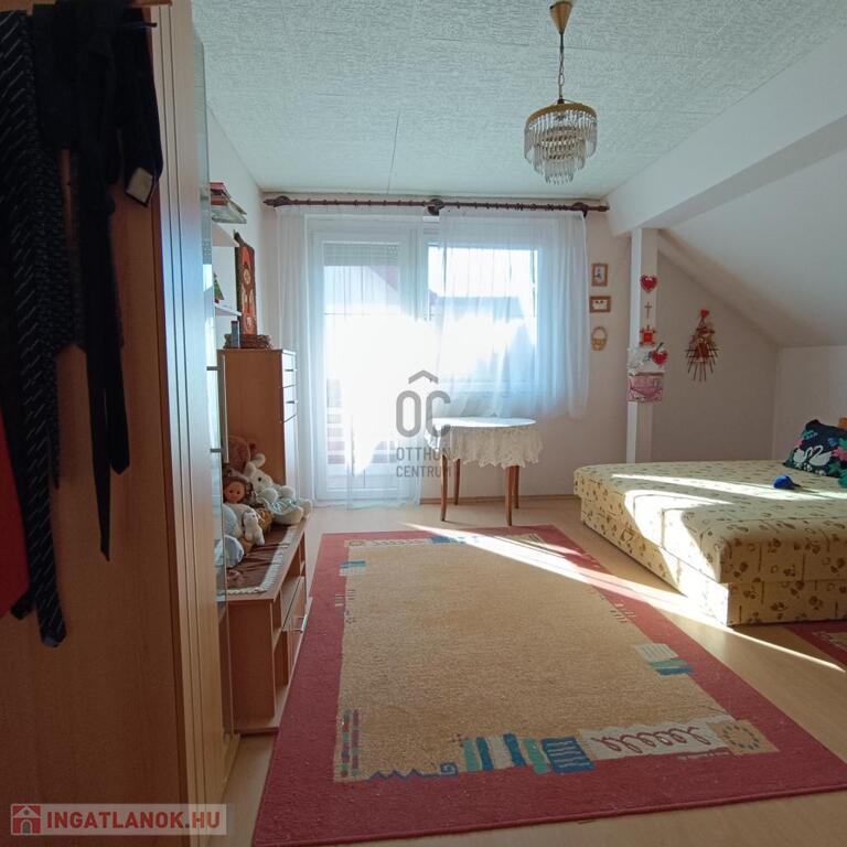 Emelet helyiségei: 3 hálószoba, amelyből az egyik erkély kapcsolatos, fürdő-WC, közlekedő