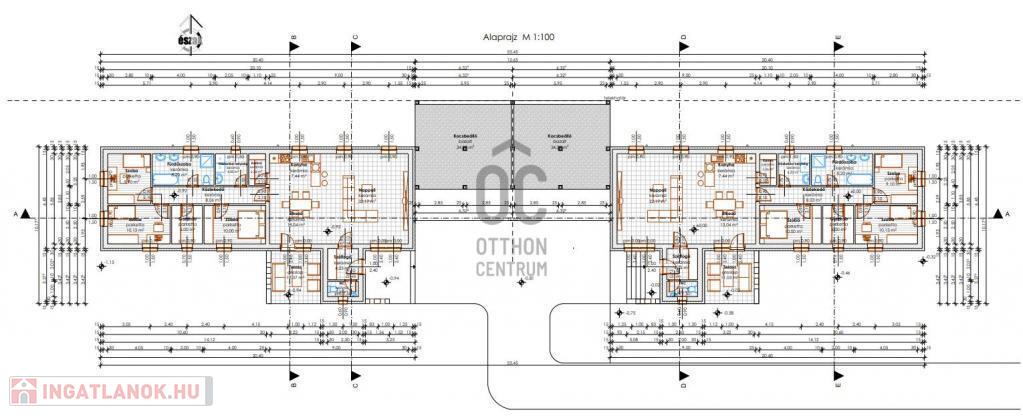 - Felosztása: szélfogó, WC, amerikai konyhás nappali, közlekedő, kamra, háztartási helyiség, fürdőszoba, gardrób, 3 szoba és terasz.