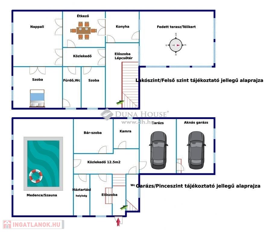 Alsó szint: 116m2 + 2 x 25m2 garázs