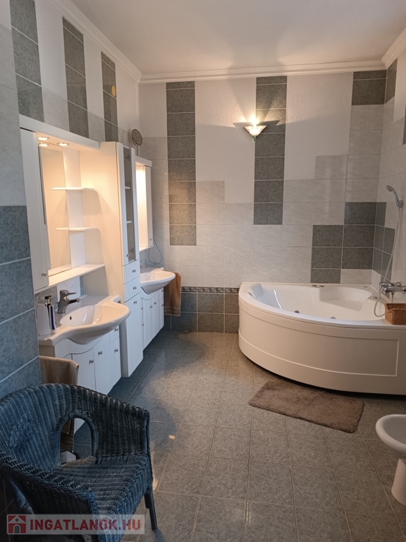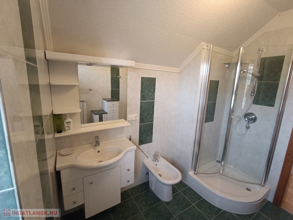 A családi ház két generáció együttélésére alkalmas. Az alagsori fűtött garázsból belső lépcsőn a földszinti lakótérbe jutunk. Az alagsor 75 m2, igényesen kialakított, tiszta, burkolt, egységesen a ház arculatát tükrözi. Találhatunk ott még egy 25 m2-es teret, közösségi vagy szauna, pihenőhely kialakítására, és plusz egyéb helyiségeket, tárolót, kazánházat. 110 m2-es felső szinten az 1 szoba mellett az 50 m2-es nappalit, konyhát-étkezőt, kamrát, tágas fürdőszobát masszázskáddal, zuhanyzóval, bidével, önálló wc-t, és szélfogót találunk egy fedett kiépített, csodás, nagy /grill/ terasszal. Tetőtere 50 m2, amiben 2 szoba, fürdő, wc és loggia kapott helyet.