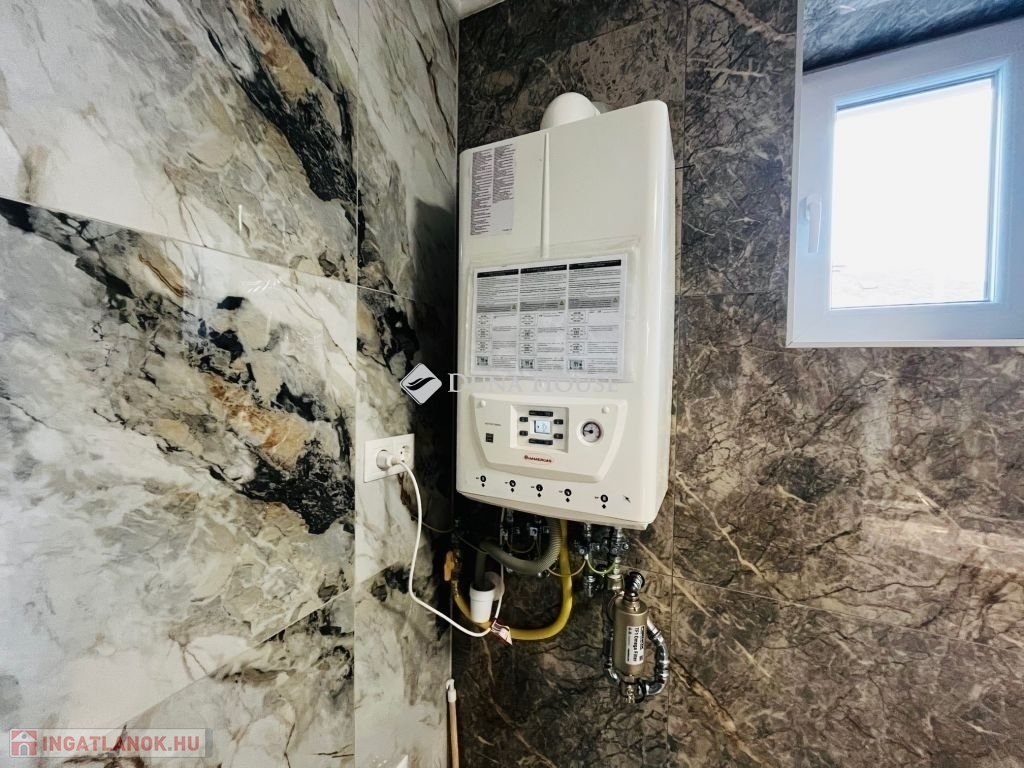 A ház fűtéséről egy modern Immergas cirkó gázkazán gondoskodik, radiátoros hőleadással, amely egyben a melegvíz ellátást is biztosítja.