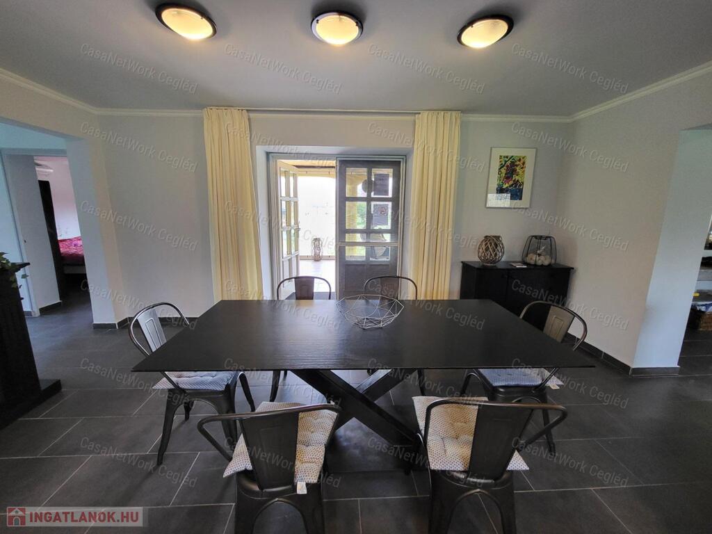 Álom tanyát keres? Elvonulna a zajos világ elöl? Megtalálta! Eladó egy olyan nagykőrősi tanya ami az elvonuláshoz és kikapcsolódáshoz a leg tökéletesebb. A semmi közepén 7750 m2-s bekerített tanya területén ( a nagykapu elektromosan nyitható ) található a 105 m2-s főépület , egy vendégház ami 35 m2 és egy 50 m2 garázs amibe egy autó kényelmesen befér és mellette sok hasznos dolog tárolására is alkalmas. Menjünk sorba , a fő épületben hatalmasak a terek és ezen belül található 3 szoba , tágas nappali , központi szerepet játszó konyha és étkező, természetesen mellékhelyiségek. Ami még tökéletes tavasztól őszig az a nyitott fedett terasz. De a tulajdonosok arra is gondoltak , hogy télen is élvezhető legyen. Így kialakításra került ennek a terasznak egy nyitható + zárható üveg fal. Az ingatlannak kettő féle fűtési lehetősége is van. Perlet kályha ami nagyon hangulatos és klímák amik télen fűtenek , nyáron a nagy melegben tökéletes enyhülést nyújtanak. Illetve az egyik szobában , a fürdőben és a toalettben elektromos badlófűtés is beépítésre került. A műanyag , hőszigetelt nyílászárók 2023-ban kerültek beépítésre. Az ingatlan víz ellátása fúrt kútról tőrténik , amire víz tisztító berendezés is rá van kötve. Ennek a fúrt kútnak a segítségével lehet tökéletes a fű is.