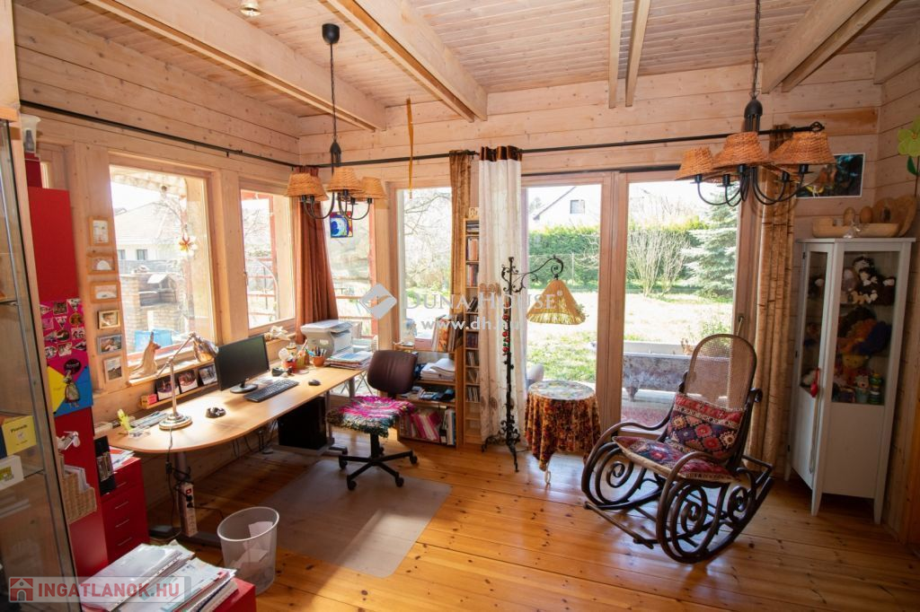 Egyedi családi ház eladó Nagykovácsi központjában!Különleges otthont keres? Most lehetősége van egy igazán egyedi kialakítású, csendes környezetben található, praktikus elrendezésű családi ház megvásárlására, amely garantáltan elnyeri tetszését!Az ingatlan Nagykovácsi központjában helyezkedik el, könnyen megközelíthető tömegközlekedéssel is. A 780 m²-es rendezett telken található 232 m²-es, kétszintes családi ház 1989-ben épült, majd 2018-ban teljes körű felújításon esett át, így a modern kényelem és a hangulatos kúria stílus tökéletes harmóniában jelenik meg.A földszinten tágas nappali fogadja, ahol egyedi cserépkályha biztosítja a kellemes, otthonos hangulatot. A világos, tágas terekhez teraszok is kapcsolódnak, melyek ideálisak a pihenésre és a családi, baráti összejövetelekre. Ezen a szinten található egy nagyméretű helyiség is, amely tökéletes közösségi térként, jóga- és meditációs helyként, vagy akár fitneszszobaként használható.A tetőtér jól megtervezett hálószobákat rejt, így a ház akár két generáció számára is kényelmes otthont nyújthat. Az ingatlan alkalmas irodai helyiségek vagy egészségügyi központ kialakítására is.Az udvarban két autó számára fedett beálló, a ház előtt további két autó számára parkolóhely, valamint tárolók biztosítják a praktikus parkolási és tárolási lehetőségeket. Az utcában is könnyedén talál parkolóhelyet.TOVÁBBI KÉRDÉSSEL, VALAMINT MEGTEKINTÉSSEL KAPCSOLATBAN VÁROM HÍVÁSÁT !