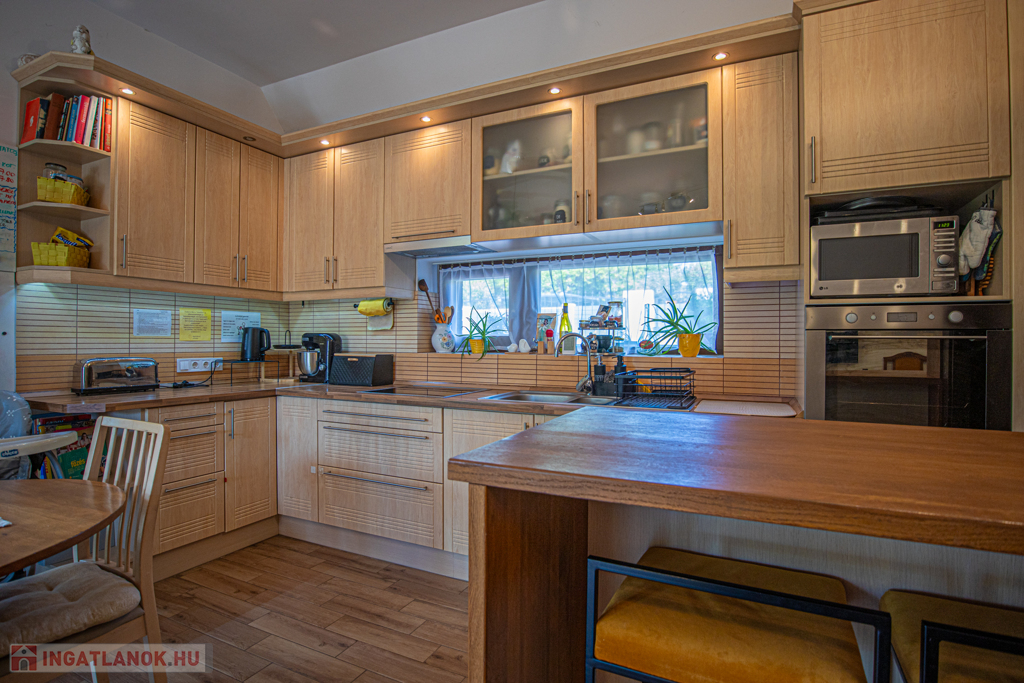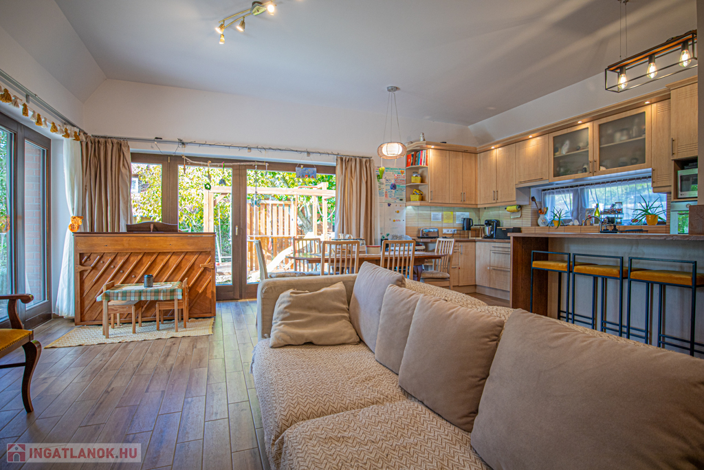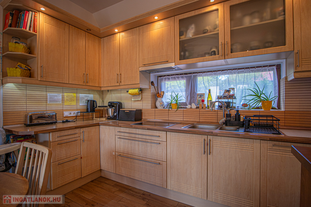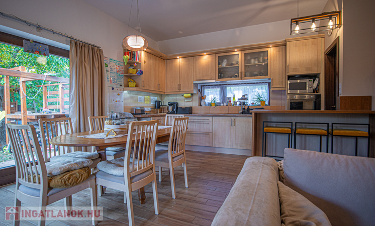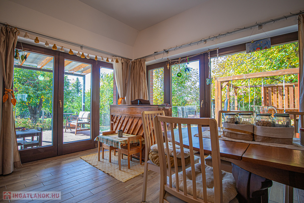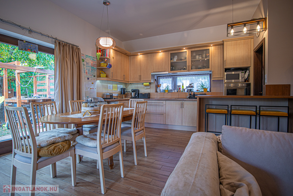 A ház 30-as Porotherm klíma téglából épült és Póth klinkertéglával került borításra. A külső nyílászárók tömbösített borovi fenyőből készültek 3 rétegű gázos hőszigetelt üvegezéssel, a belső nyílászárók szintén borovi fenyőből készültek. A bejárati ajtó biztonságáról egy hőszigetelt NIVÓ biztonsági ajtó gondoskodik. A ház 3 méteres belmagassággal rendelkezik. A konyha gépesített, beépített sütő és indukciós főzőlappal, falon kívülre kivezetett szagelszívóval és beépített mosogatógéppel rendelkezik, számos beépített szekrény/gardrób található a földszinten és a kamrában.
