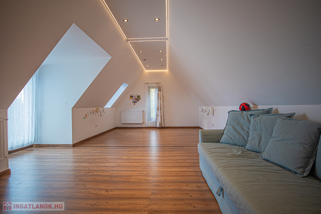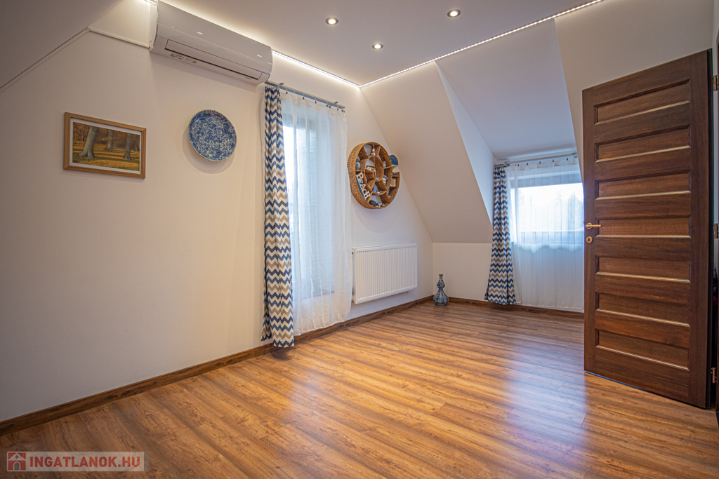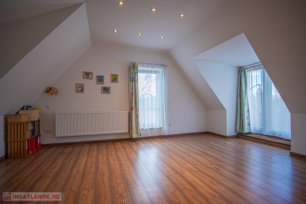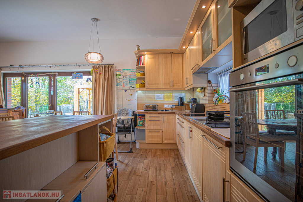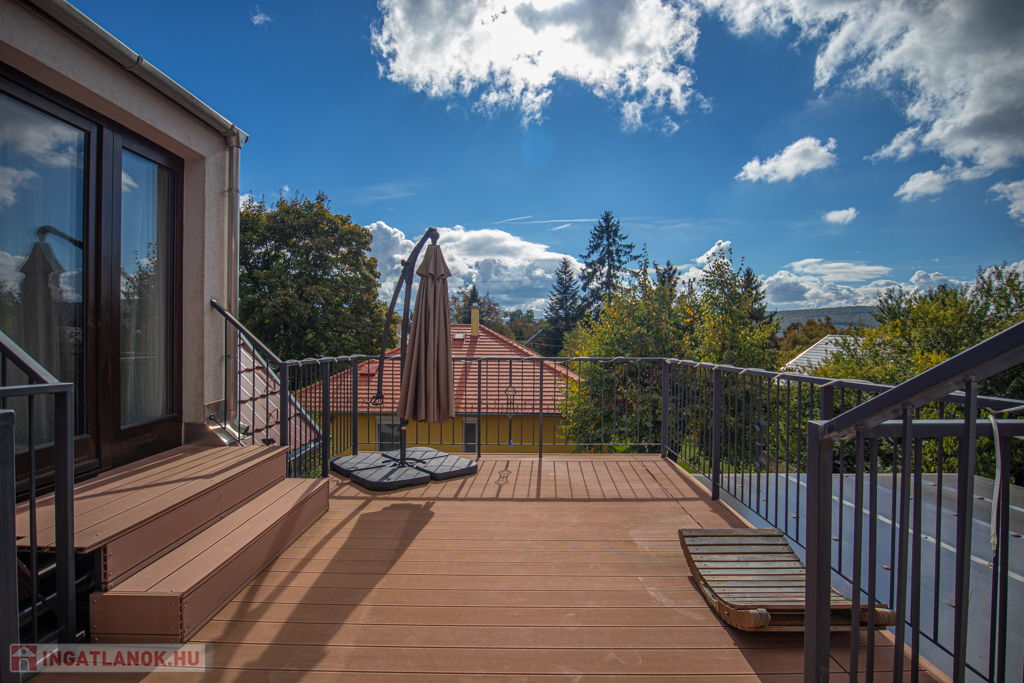 A budai agglomeráció közkedvelt településén, a gyönyörű természeti környezetben fekvő Nagykovácsiban (Zsíroshegyen) eladó egy csendes, 2 éve aszfaltozott, átmenő forgalomtól mentes utcában lévő 2016-ban magas minőségben épült, 2 szintes, nettó 198nm-es, amerikai konyhás nappali + 6 hálószobás, napfényes, önálló, újszerű állapotban lévő családi ház 25nm-es részben fedett, valamint az emeleten található 11nm-es terasszal (WPC burkolattal).