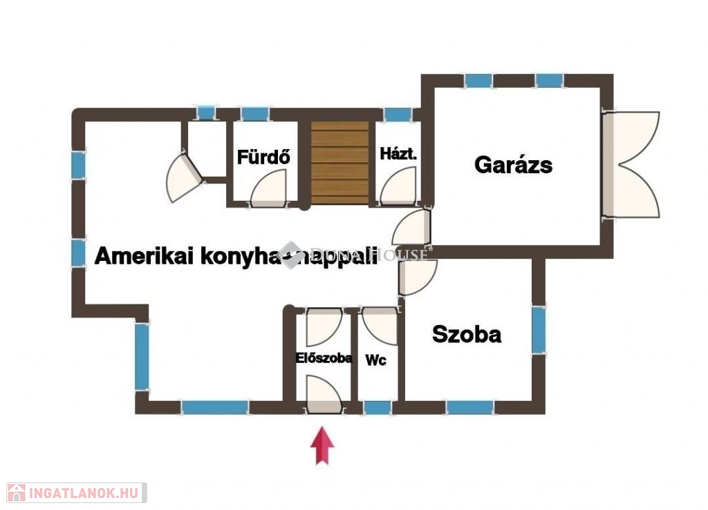 Földszinten egy 15 nm-es szoba, a tetőtérben három nagyobb.