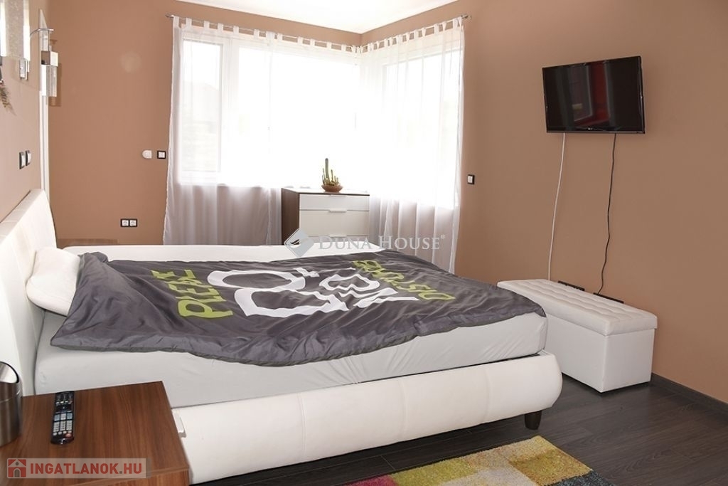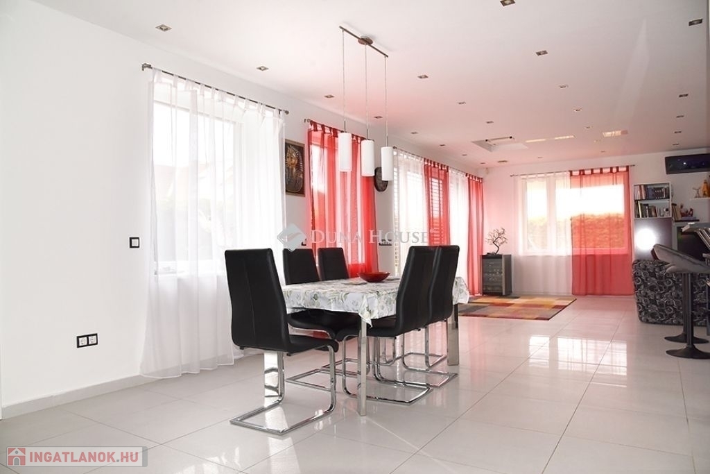 A 30-as Porotherm (HS Profi) + 20 cm vastag (Austrotherm Grafit) falazatú ház, hőszivattyú (levegő-víz), padló fűtéses, amely 200 l-es puffer tárolón keresztül kapcsolódik a rendszerre. Nyáron a hűtés a hőszivattyúról üzemel ( padló és fancol). A nyílászárók Internorm Thermo Passiv műanyag/alu magas termohab hőszigetelésű és 3-réteg üvegezésüek, elektromos zsaluziával, szúnyoghálóval. A belső burkolatok, a beépített bútorok magas minőségűek, a beépített részek a vételár részét képezik.