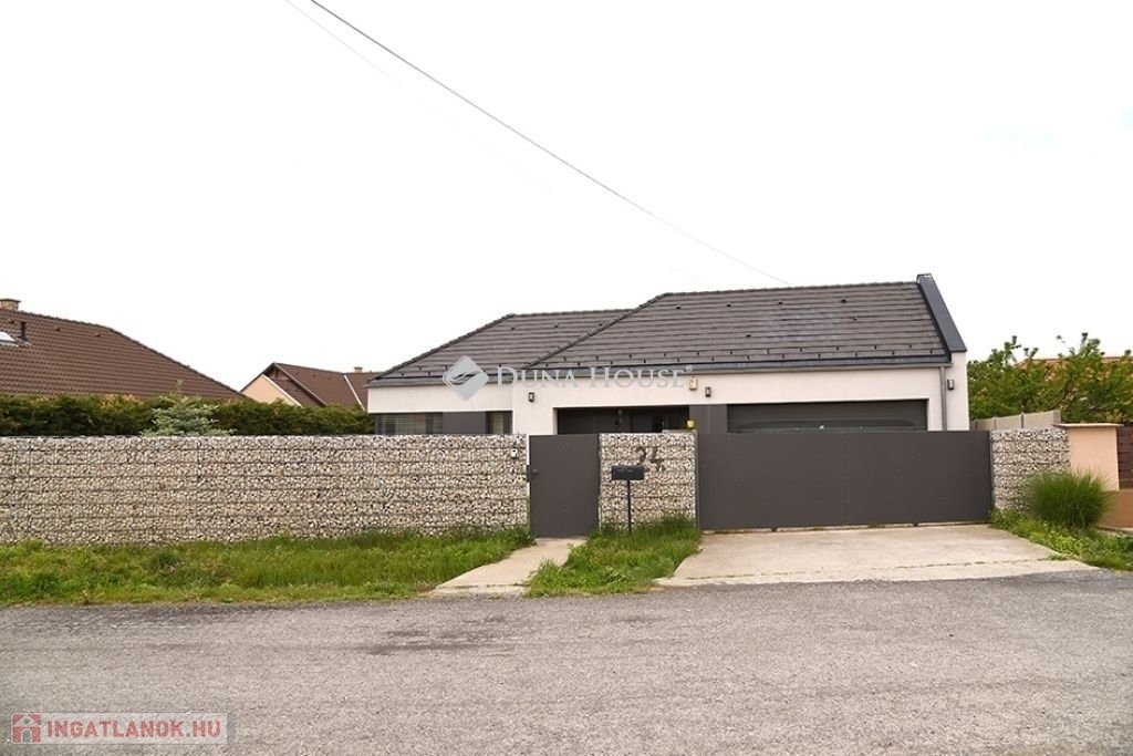 A házhoz kétállásos 38 m2-es garázs tartozik, amelyből közvetlen átjárás van a lakórészbe, a telek bejárata előtt elektromos úszókapu.
