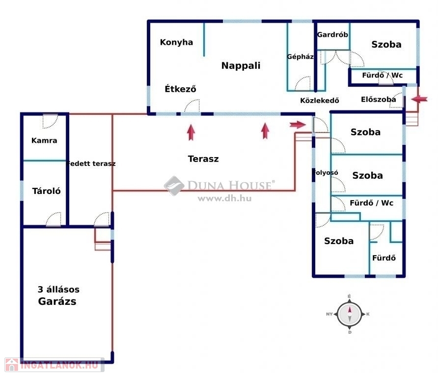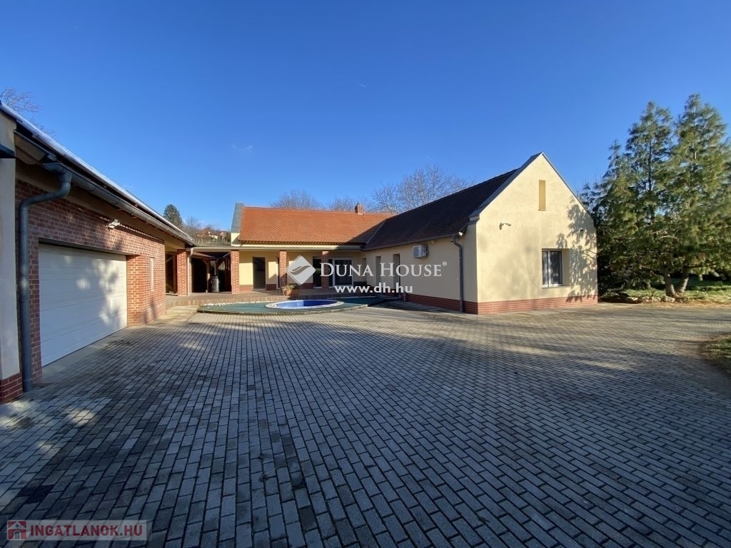 Nagykozárban, Pécstől 10 percre, eladó egy 150nm alapterületű, amerikai konyha nappalis, 4 hálószobás, 3 fürdőszobás, nagy teraszos, modern kialakítású, egyszintes családi ház, 3 állásos garázzsal, fedett autóbeállóval, 2739nm-es területtel.Az ingatlan U alakban körbe öleli a mediterrán teraszt és a medencét, ezzel teljes intimitást biztosítva. A ház déli fekvése és nagy méretű nyílászáróinak köszönhetően rendkívül világos. A tágas nappaliból és az étkezőből közvetlen kijárat nyílik a mediterrán teraszra és a medencéhez. A 4 külön nyíló hálószoba közül az egyik saját fürdőszobával rendelkezik. A ház elrendezése nagyon átgondolt, mivel a hálószobák teljesen elkülönülnek a közös terektől, ezzel nem zavarva a pihenni vágyókat. Az ingatlanban gardrób és háztartási helyiség is helyet kapott. Az udvarban található egy 3 állásos garázs, elektromos kapuval, elektromos autó töltővel, továbbá egy fedett 3 állásos autóbeálló. A garázsból további háztartási helyiségek nyílnak, melyek fűthetők és mosdóval felszereltek. A terület szépen gondozott, térkővel burkolt. Extrák: - 20cmes külső szigetelés- Purhabos födém szigetelés- Fűtés gáz Cirkó + klíma, padló fűtés , szobákban radiátor- Elektromos alumínium redőny- 10 KW napelemes rendszer- Elektromos autó töltő- Elektromos garázskapu- Elektromos kapunyitás- Kamera rendszer - Klíma- Riasztó- MedenceA ház méreteit és adottságát tekintve, akár nagycsaládosok számára, illetve a tágas életteret kedvelőknek is tökéletes választás.Ingatlan tehermentes, rövid időn belül költözhető!Amennyiben felkeltette érdeklődését, keressen bizalommal!