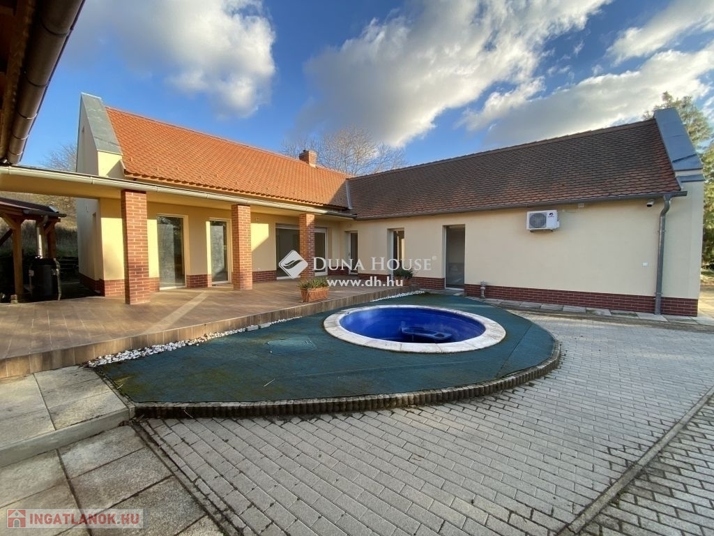 Nagykozárban, Pécstől 10 percre, eladó egy 150nm alapterületű, amerikai konyha nappalis, 4 hálószobás, 3 fürdőszobás, nagy teraszos, modern kialakítású, egyszintes családi ház, 3 állásos garázzsal, fedett autóbeállóval, 2739nm-es területtel.Az ingatlan U alakban körbe öleli a mediterrán teraszt és a medencét, ezzel teljes intimitást biztosítva. A ház déli fekvése és nagy méretű nyílászáróinak köszönhetően rendkívül világos. A tágas nappaliból és az étkezőből közvetlen kijárat nyílik a mediterrán teraszra és a medencéhez. A 4 külön nyíló hálószoba közül az egyik saját fürdőszobával rendelkezik. A ház elrendezése nagyon átgondolt, mivel a hálószobák teljesen elkülönülnek a közös terektől, ezzel nem zavarva a pihenni vágyókat. Az ingatlanban gardrób és háztartási helyiség is helyet kapott. Az udvarban található egy 3 állásos garázs, elektromos kapuval, elektromos autó töltővel, továbbá egy fedett 3 állásos autóbeálló. A garázsból további háztartási helyiségek nyílnak, melyek fűthetők és mosdóval felszereltek. A terület szépen gondozott, térkővel burkolt. Extrák: - 20cmes külső szigetelés- Purhabos födém szigetelés- Fűtés gáz Cirkó + klíma, padló fűtés , szobákban radiátor- Elektromos alumínium redőny- 10 KW napelemes rendszer- Elektromos autó töltő- Elektromos garázskapu- Elektromos kapunyitás- Kamera rendszer - Klíma- Riasztó- MedenceA ház méreteit és adottságát tekintve, akár nagycsaládosok számára, illetve a tágas életteret kedvelőknek is tökéletes választás.Ingatlan tehermentes, rövid időn belül költözhető!Amennyiben felkeltette érdeklődését, keressen bizalommal!