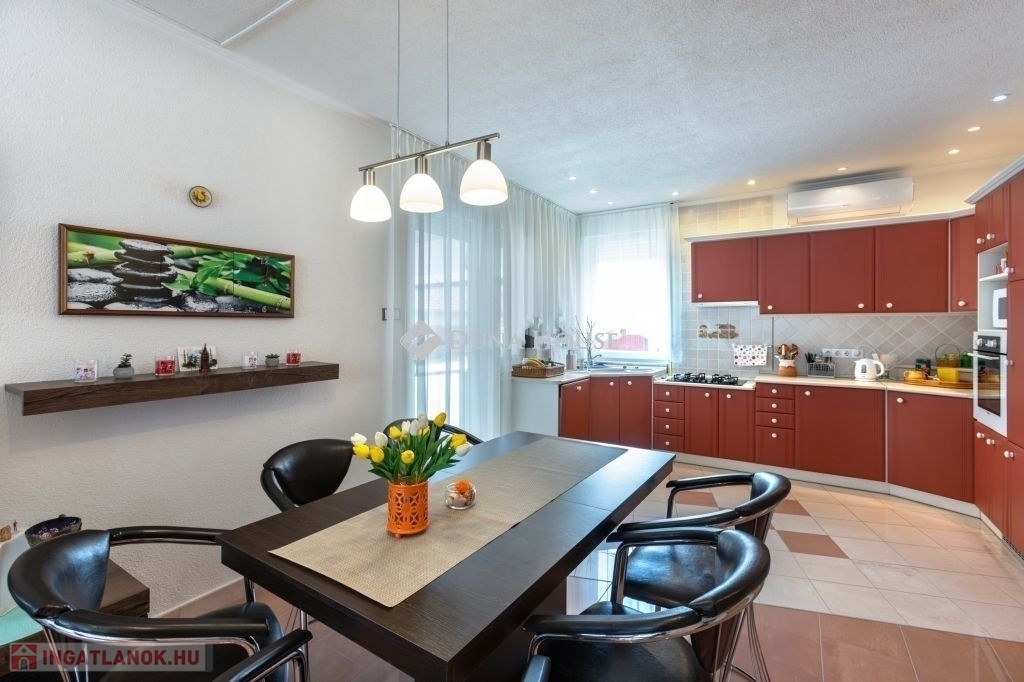 - Nagyméretű nappali Mecsekre néző nyugati tájolással, fedett teraszos kertkapcsolattal