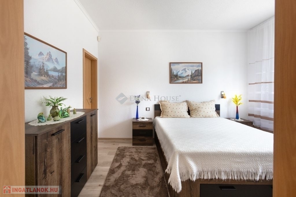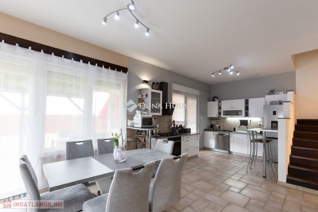 Eladásra kinálok egy kétlakásos családi házat, Pécs központjától 8km-re Nagykozárban.Az ingatlan 2005-ben épült, 1 250m² telken helyezkedik el, csendes környezetben, meghitt otthont biztosítva akár több generációs életformához is.Összes lakóterület: 245m²Garázs: 60m²Terasz: 46m²1. LAKÁS 148m²Földszint 90m²- Nagyméretű nappali Mecsekre néző nyugati tájolással, fedett teraszos kertkapcsolattal- Tágas amerikai konyha étkezővel, beépített kamrával- Hálószoba- Nagyméretű fürdőszoba (épített tusoló, kád, wc, bidé)Tetőtér 58m²- 3 hálószoba- 2 gardrób- Nagyméretű fürdőszoba (épített tusoló, kád, wc, bidé)2. LAKÁS 95m²- Nappali- Amerikai konyha, étkezővel, fedett teraszos kiülési lehetőséggel- 2 hálószoba- Nagyméretű fürdőszoba (épített tusoló, kád, wc, bidé)- Nagyméretű háztartartási helység ( kazán, mosógép, tároló)- Tetőtér beépítési lehetőséggelA két lakást egy fűthető 60m²-es dupla garázs köti össze, benne kialakítva:- Külön wc kézmosóval- Nyári konyha (gáztűzhely, mosogató)Az épület főbb jellemzői:-PTH 38-as téglafalazat hőszígetelt vakolattal-BRAMAC antik cserépfedés-Térkövezet, parkosított udvar- Napelem- Klima