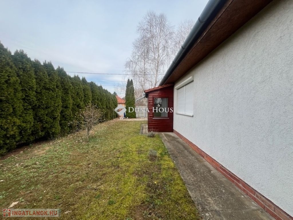 A kanadai acélvázas könnyűszerkezetes ( Horizont) ház nappali+ 3 szobás, gáz cirkó fűtéses, 22 m2-es fedett teraszos, 1008 m2-es kerítéssel körbekerített, gondozott, rendezett telken található. Házhoz egy állásos 16 m2-es garázs tartozik.