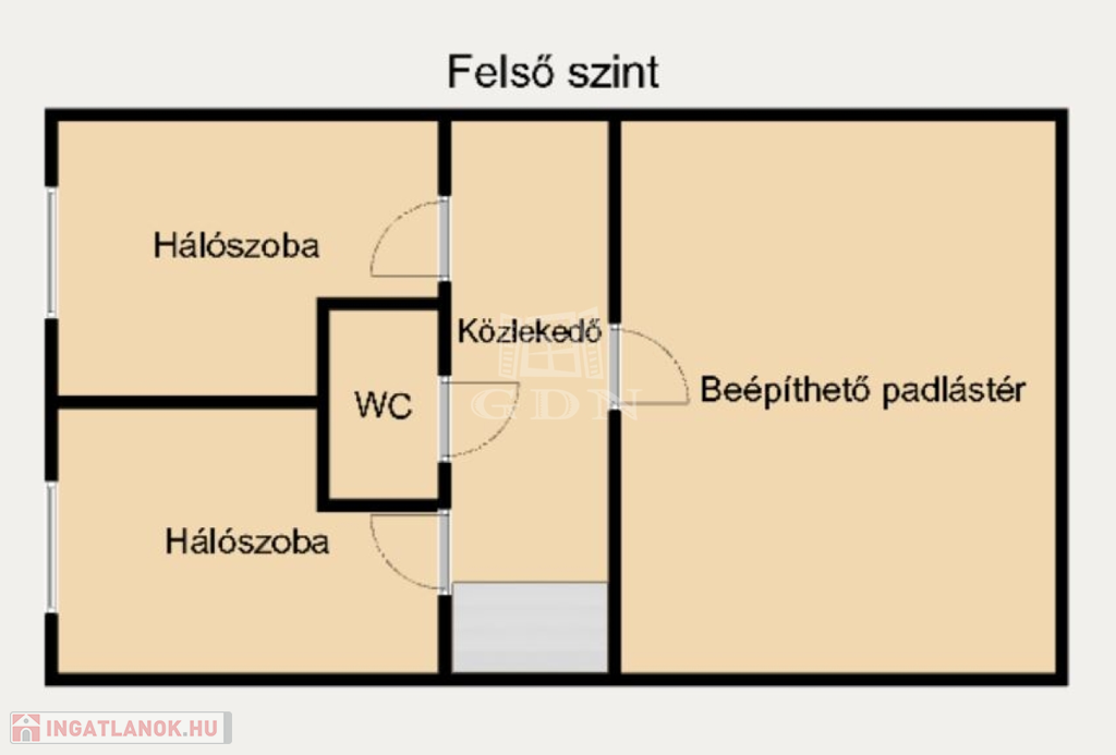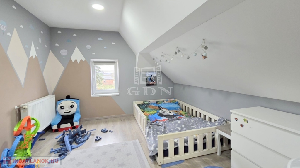 Az ingatlan tetőterének egyik része még nem került beépítésre, de a lehetőség megvan a lakóterület további növelésére.