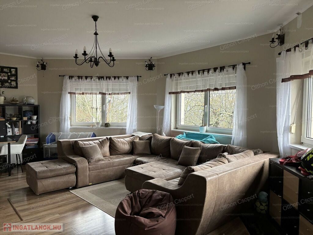 Három szinten összesen 140 négyzetméter a hasznos lakótér, amelyben 5 és fél szoba, két konyha, 3 fürdőszoba és egy külön wc található.